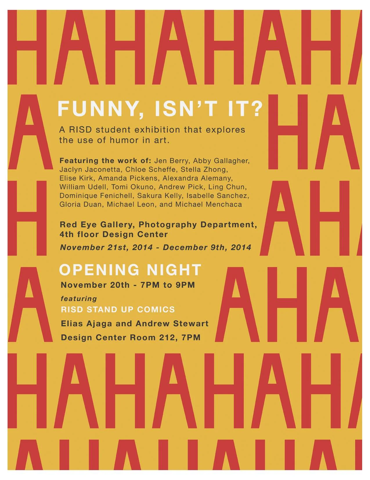 Friends in Providence, I have a photograph in this group show, opening tomorrow and running through December 9. Come get your laughs.